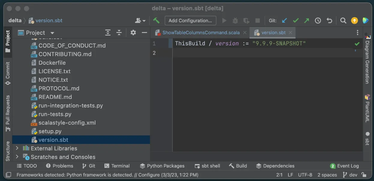 Our local repository is now set to version 2.2.0 of the Delta Lake Spark connector.