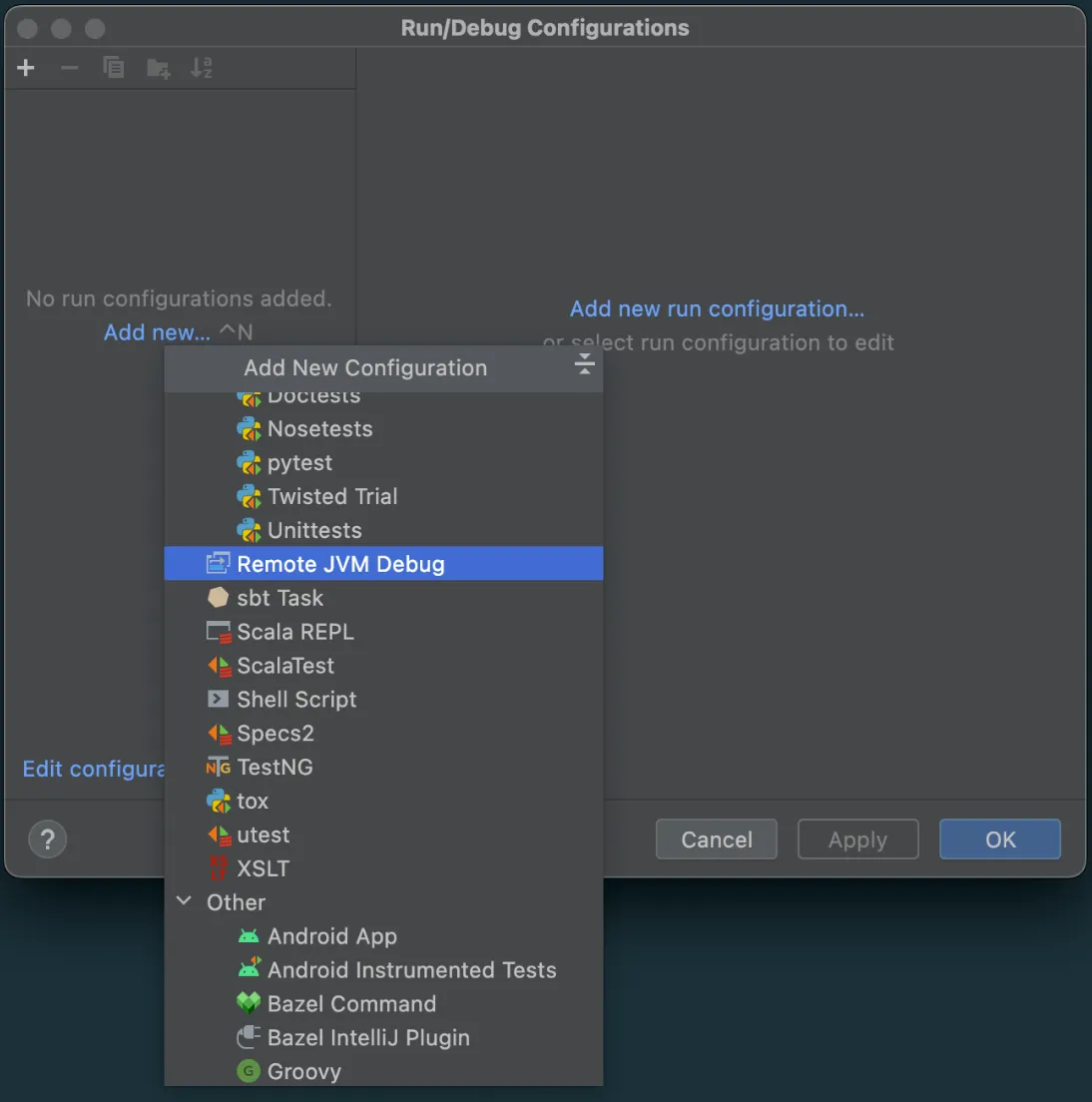 We’ll pass this configuration property to Spark from our terminal the next time we run so that it knows to listen on port 5005 for the IntelliJ debugging session.