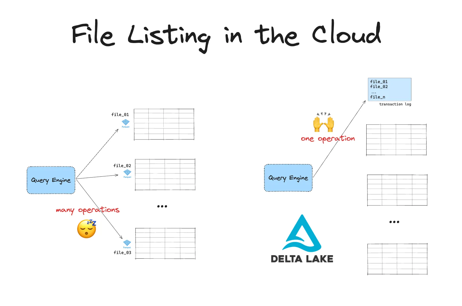 Suppose you have a table stored in a data lake on S3. The data in this table is spread over many files in a directory. To run a query on this table, your engine will first need to list all the files and then filter for the relevant ones. On S3, a LIST operation is limited to 1000 objects. If your table has millions of files, this will result in high latency and slower queries.