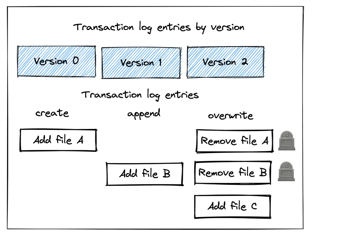 Some Delta Lake operations are logical operations that make entries in the transaction log but don’t modify existing data files. Delta Lake tombstoning existing data files for an overwrite transaction is an example of a logical operation - the files are marked for removal, but they’re not actually removed.